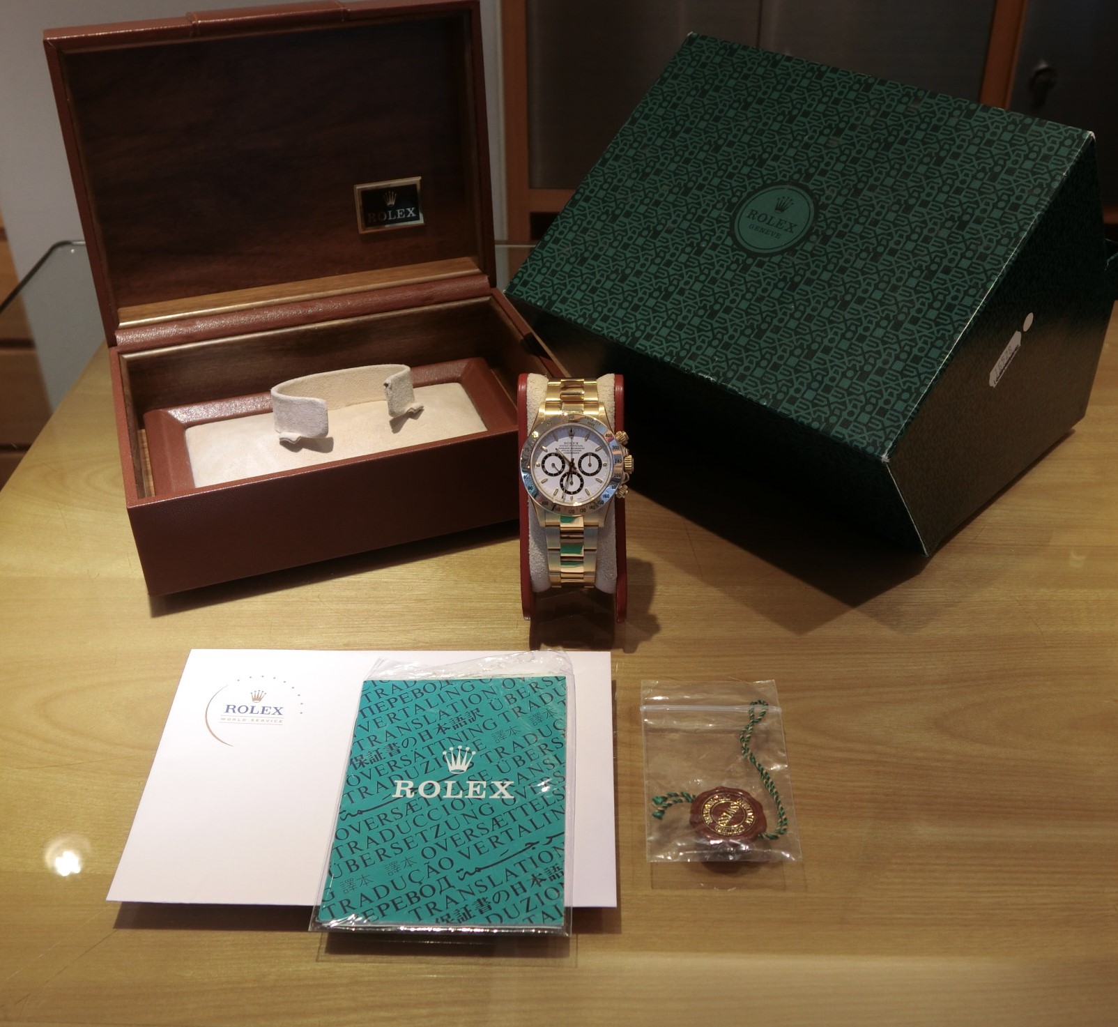 外箱のシールには型番の16528が印字されておりますが、内箱は当時のデイデイト等に用意された金無垢専用箱が付属いたします。