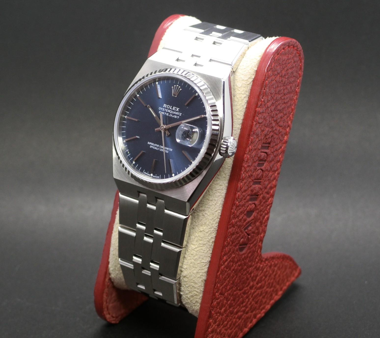 特徴的な角ばったケースデザインと一体型ブレスレットが、他のロレックスモデルとは一線を画しています。