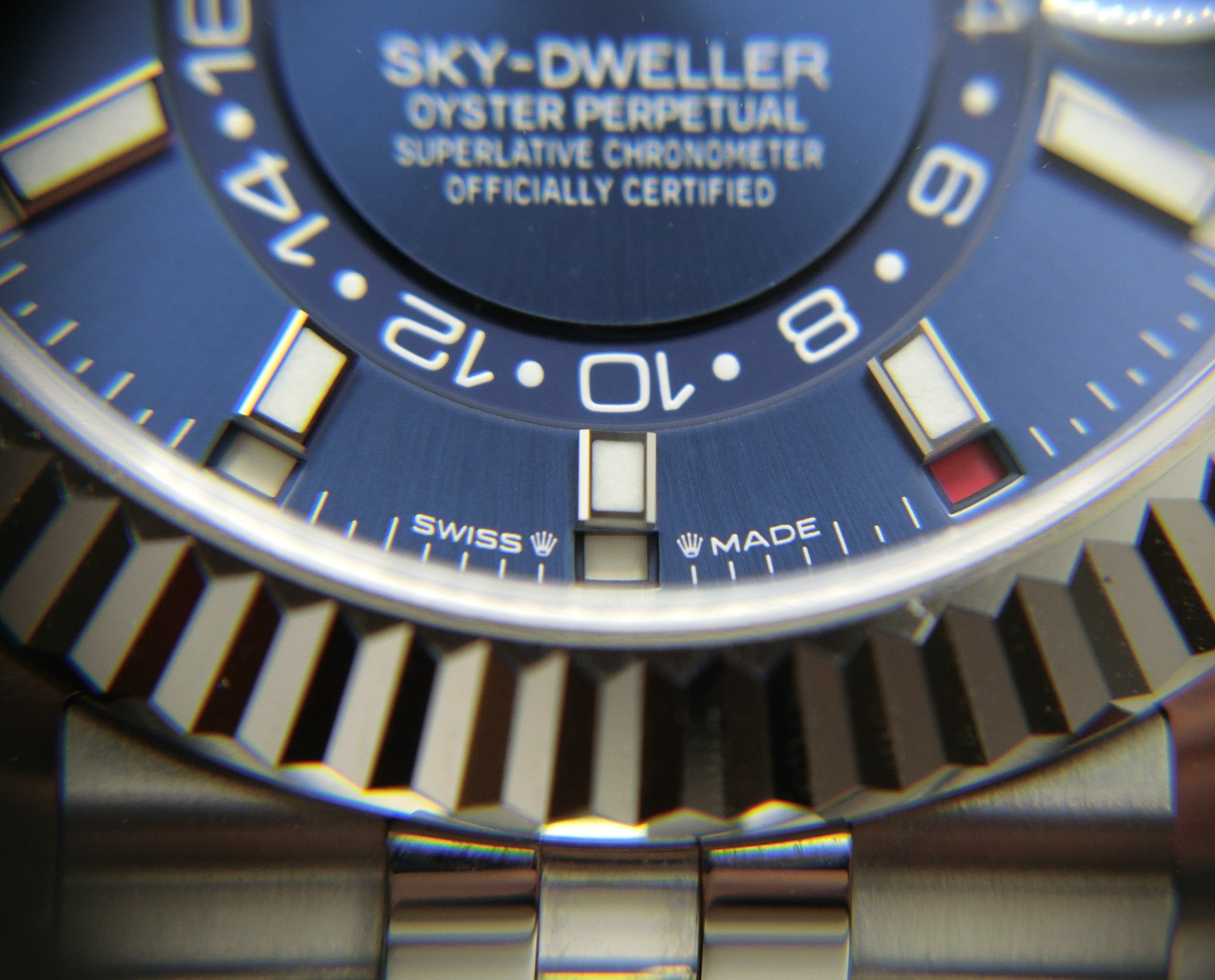 文字盤下部表記の「SWISS MADE」の “SWISS” と “MADE” の間にクラウンマークが追加された最新仕様となりました。