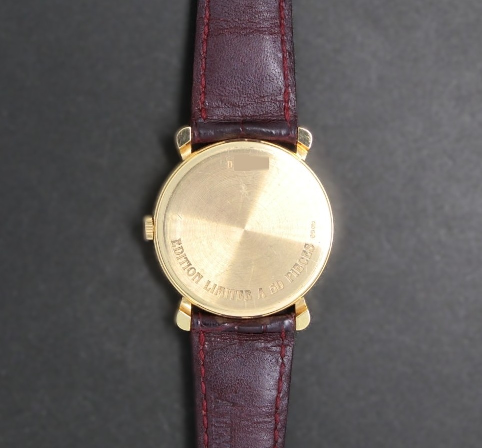 搭載されるムーブメントは、高級エボーシュメーカーとして名高いフレデリック・ピゲ社のCal.810をベースに開発されたCal.2085