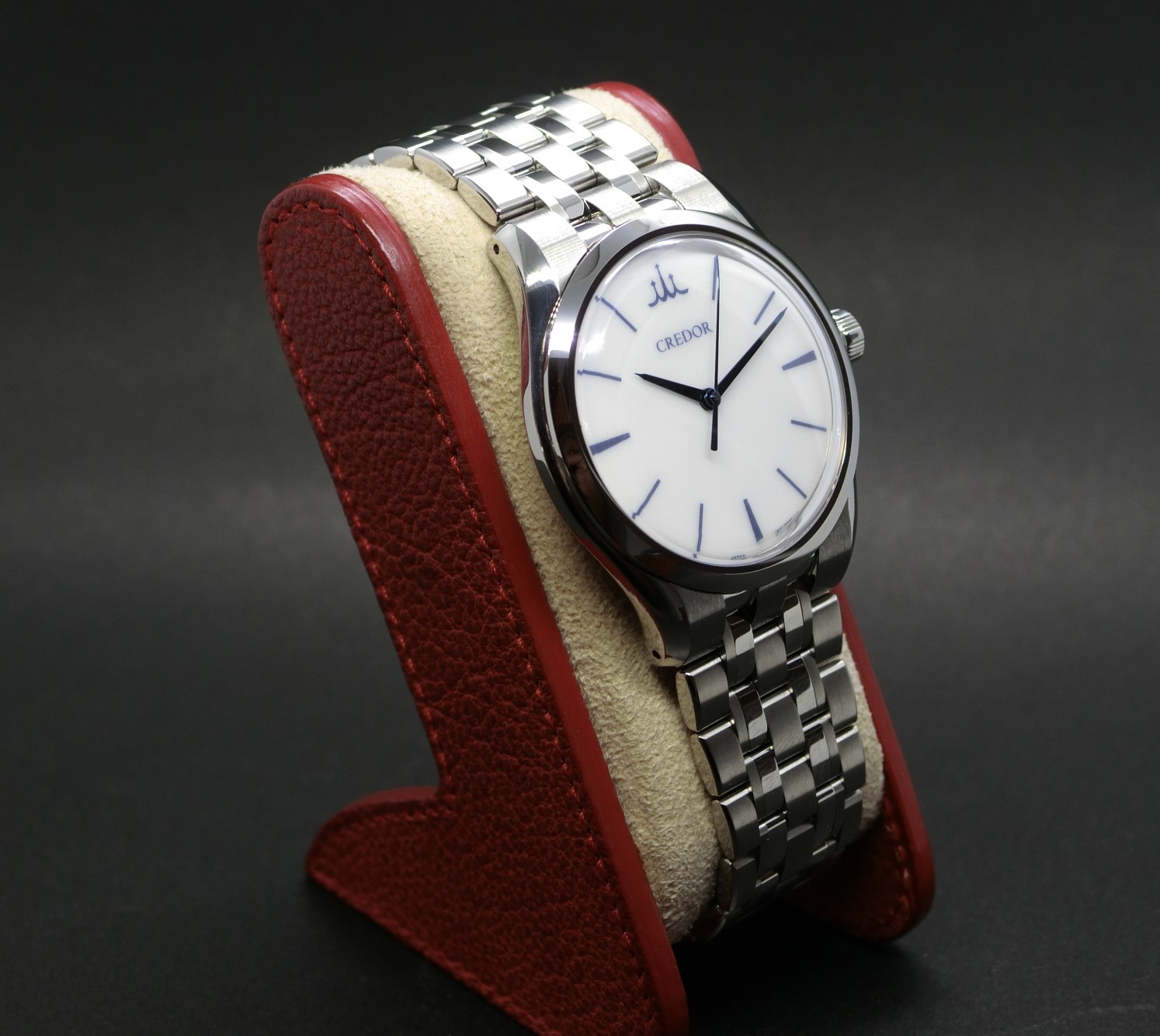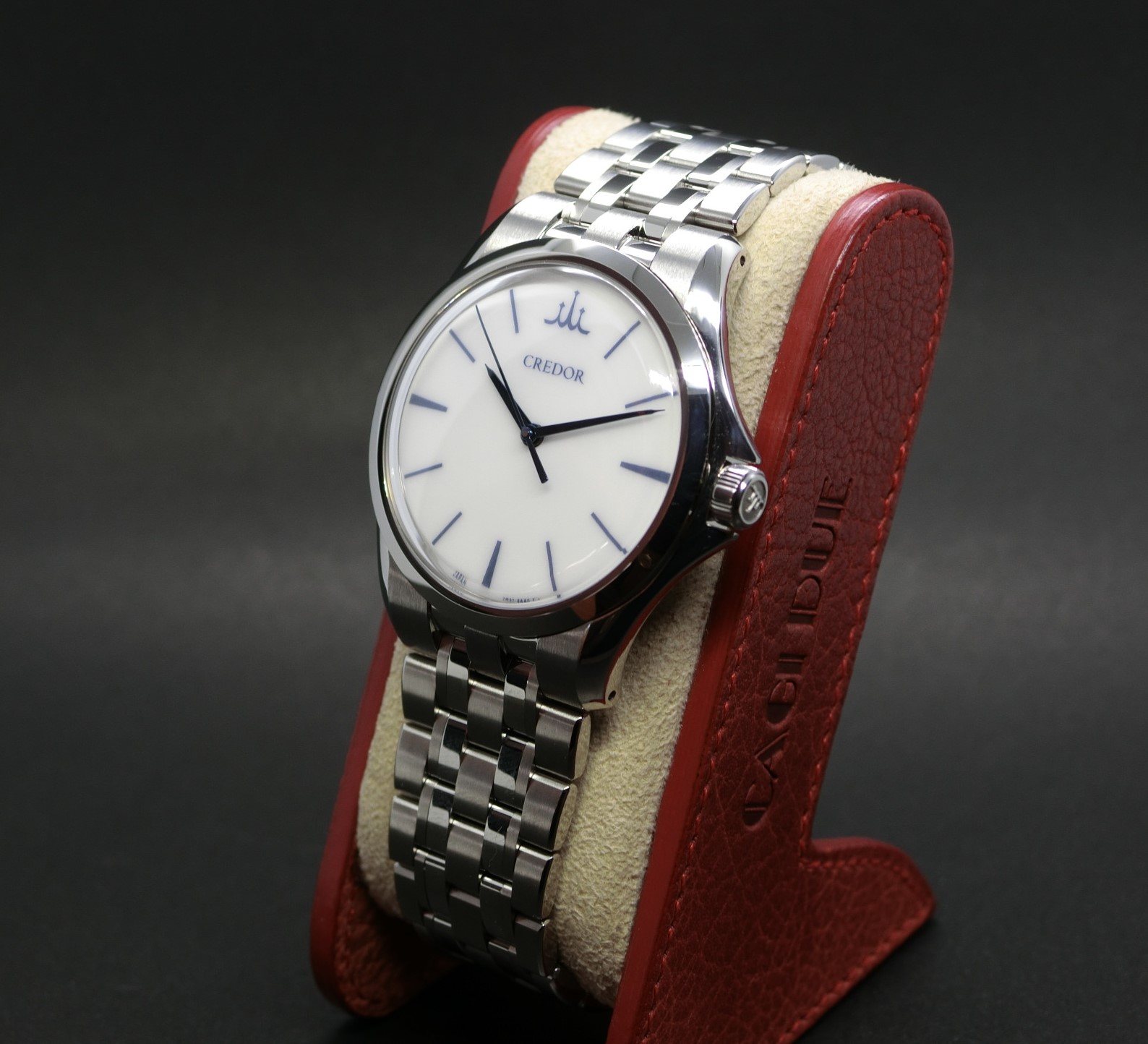 クレドール専用の新型手巻スプリングドライブ「キャリバー7R31」を搭載し、薄型ながら約72時間の駆動を実現。