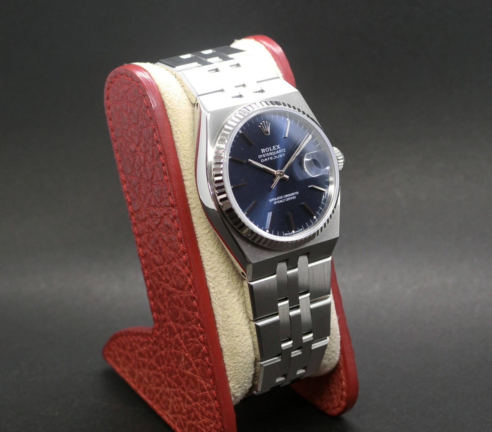 特徴的な角ばったケースデザインと一体型ブレスレットが、他のロレックスモデルとは一線を画しています。