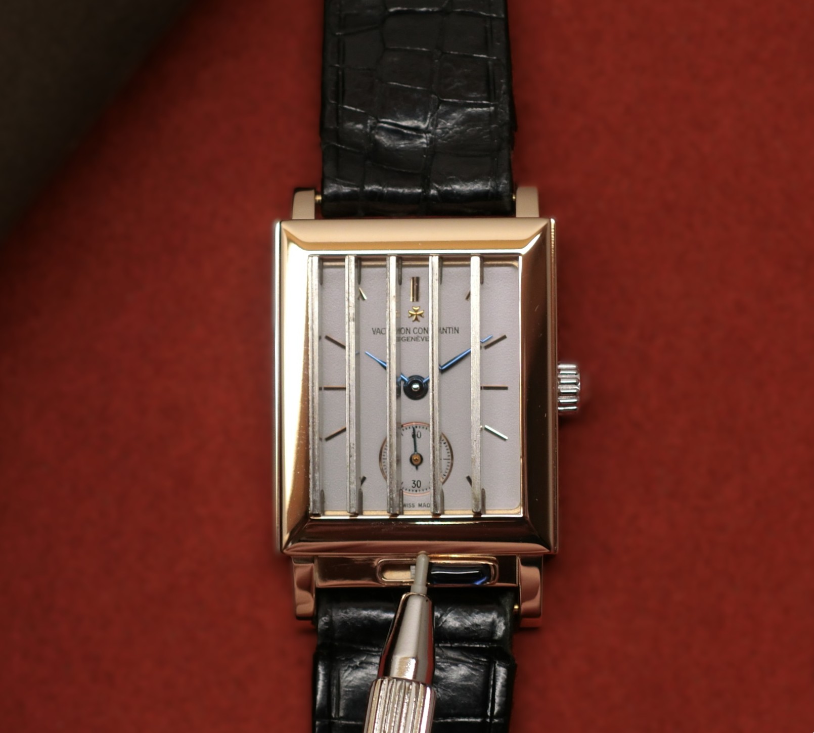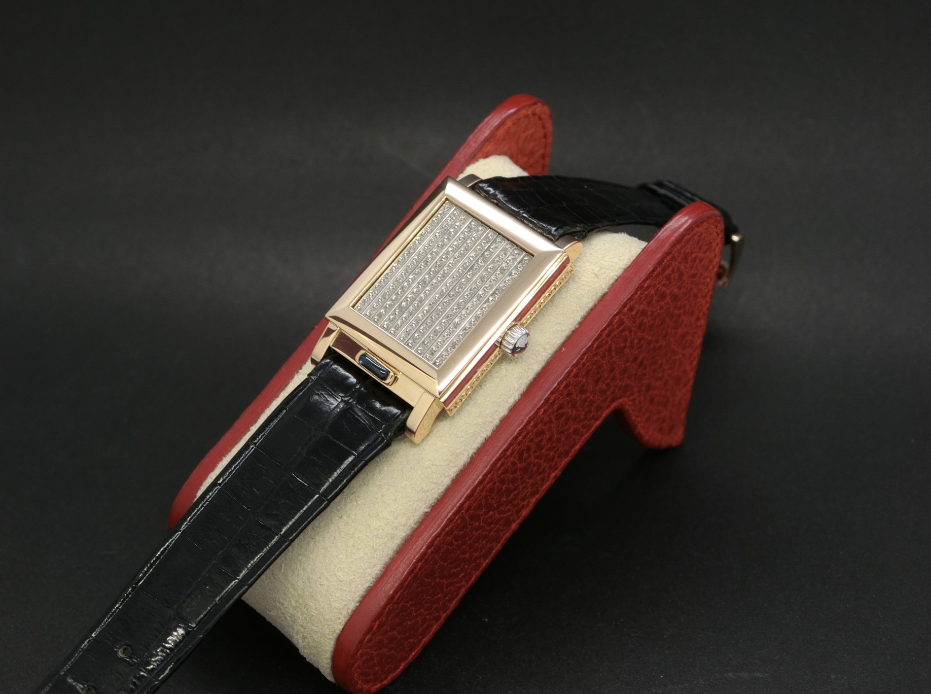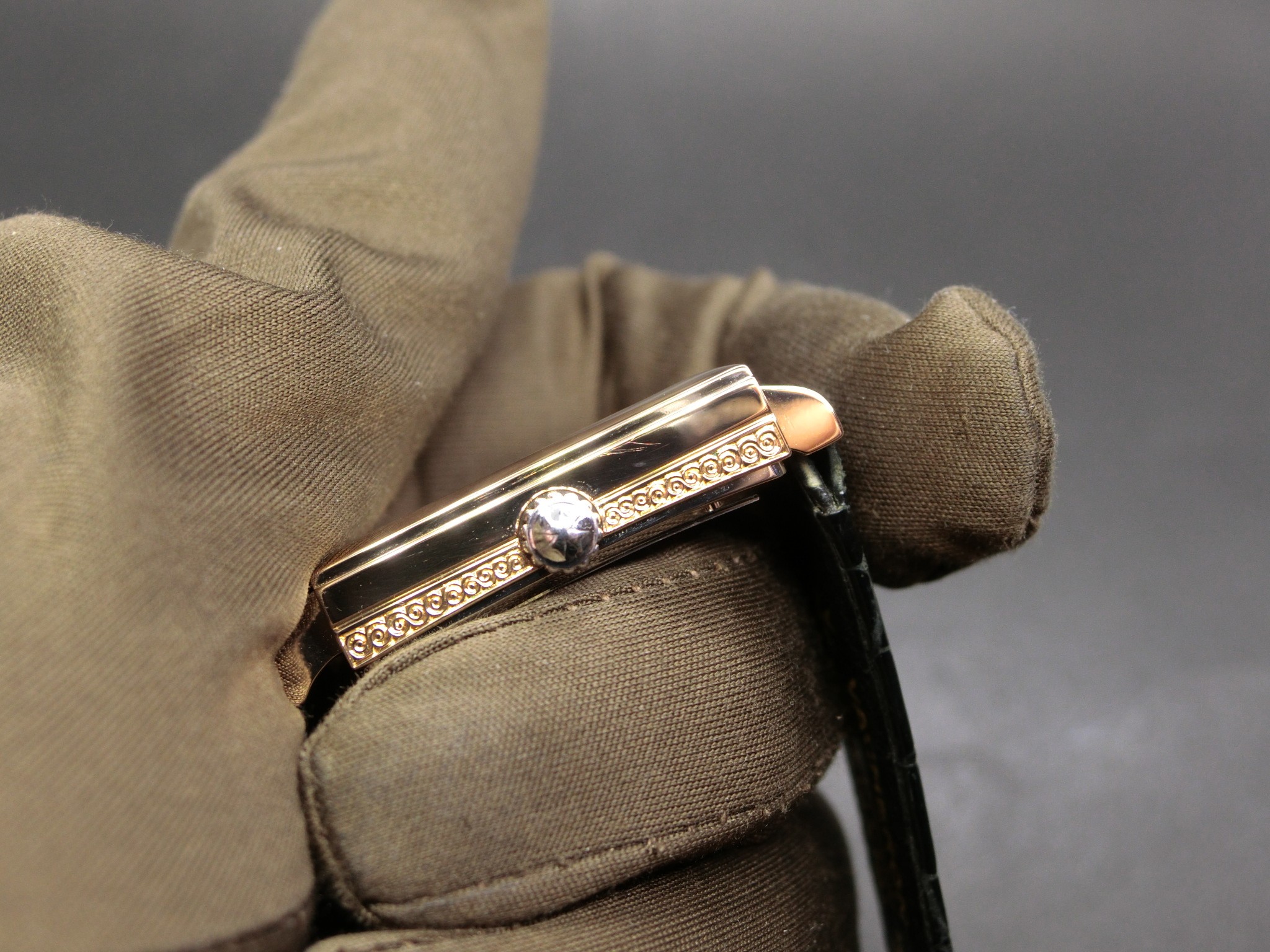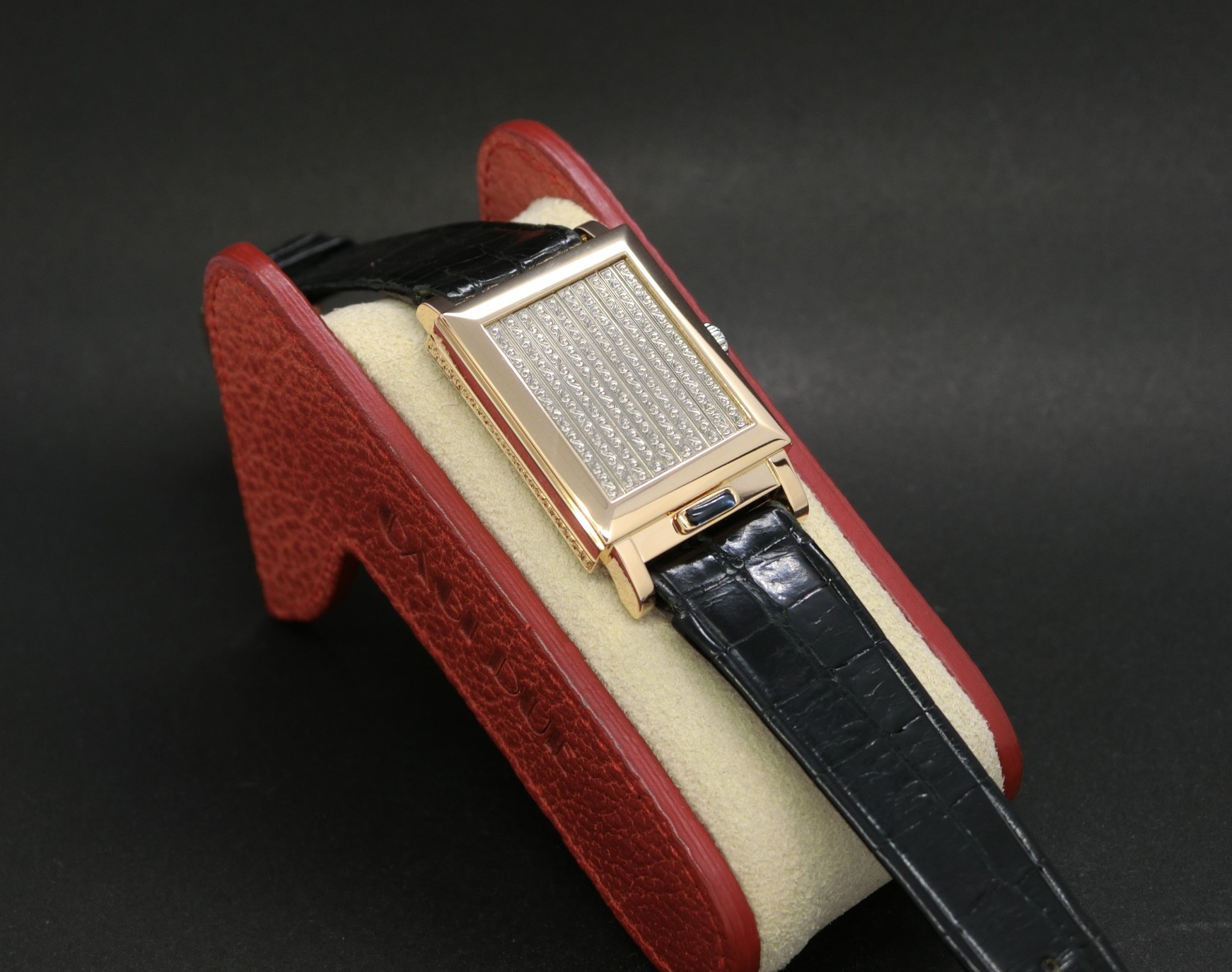 1990年代半ば、ブランド創立240周年を記念して発売されたモデル。1930年代の「ステルス・ウォッチ」から着想を得た、独自のシャッター機構(ジャルージ)を搭載した角型ケースが特徴です。